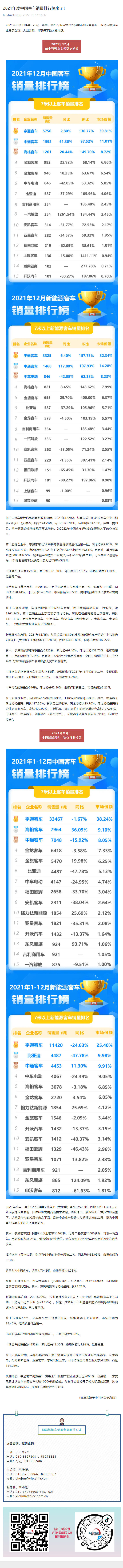 2021年度中國客車銷量排行榜來了!
